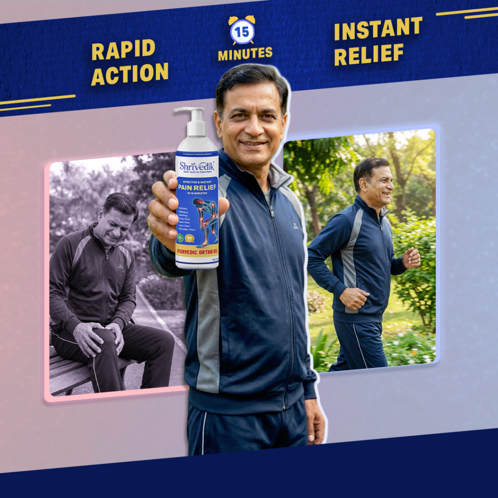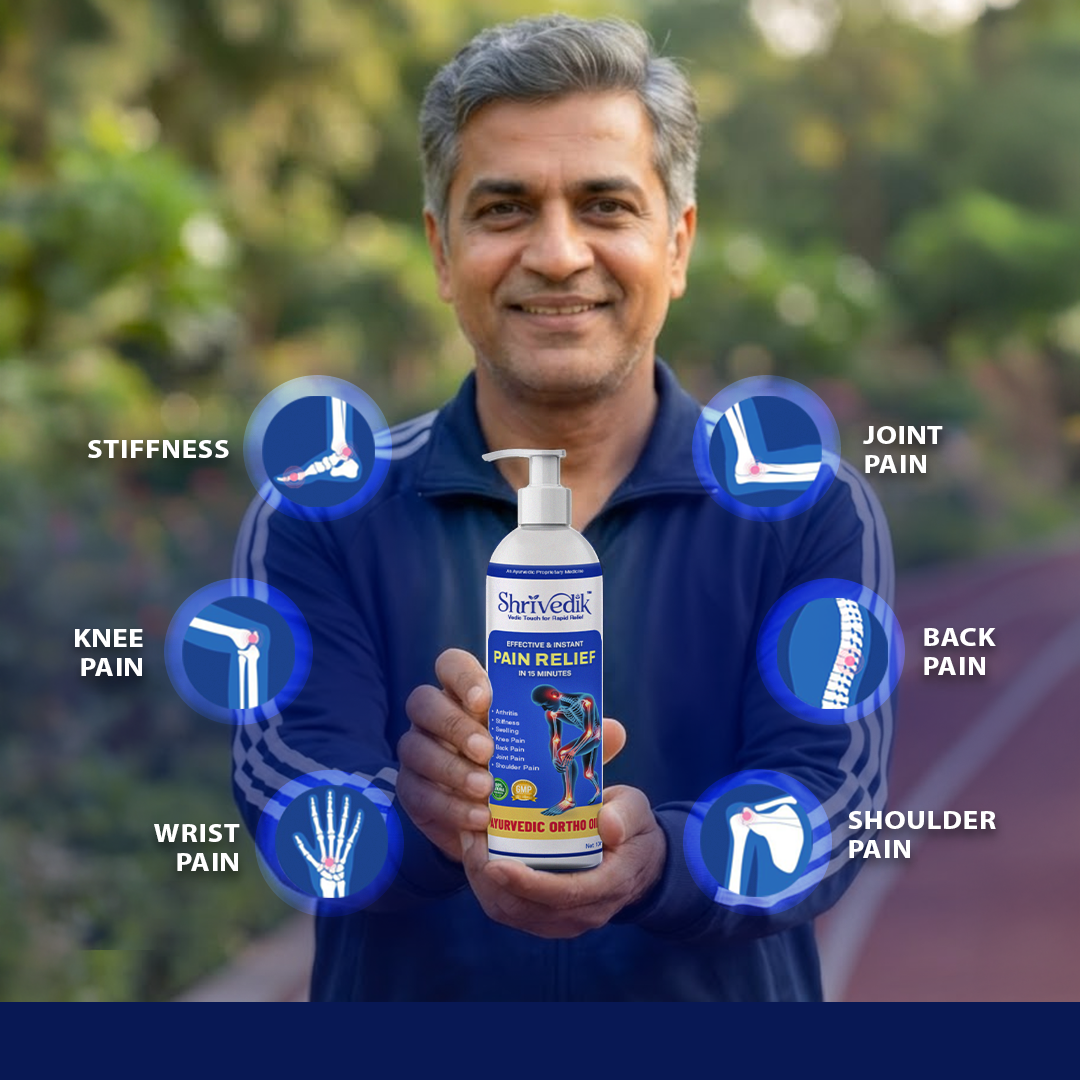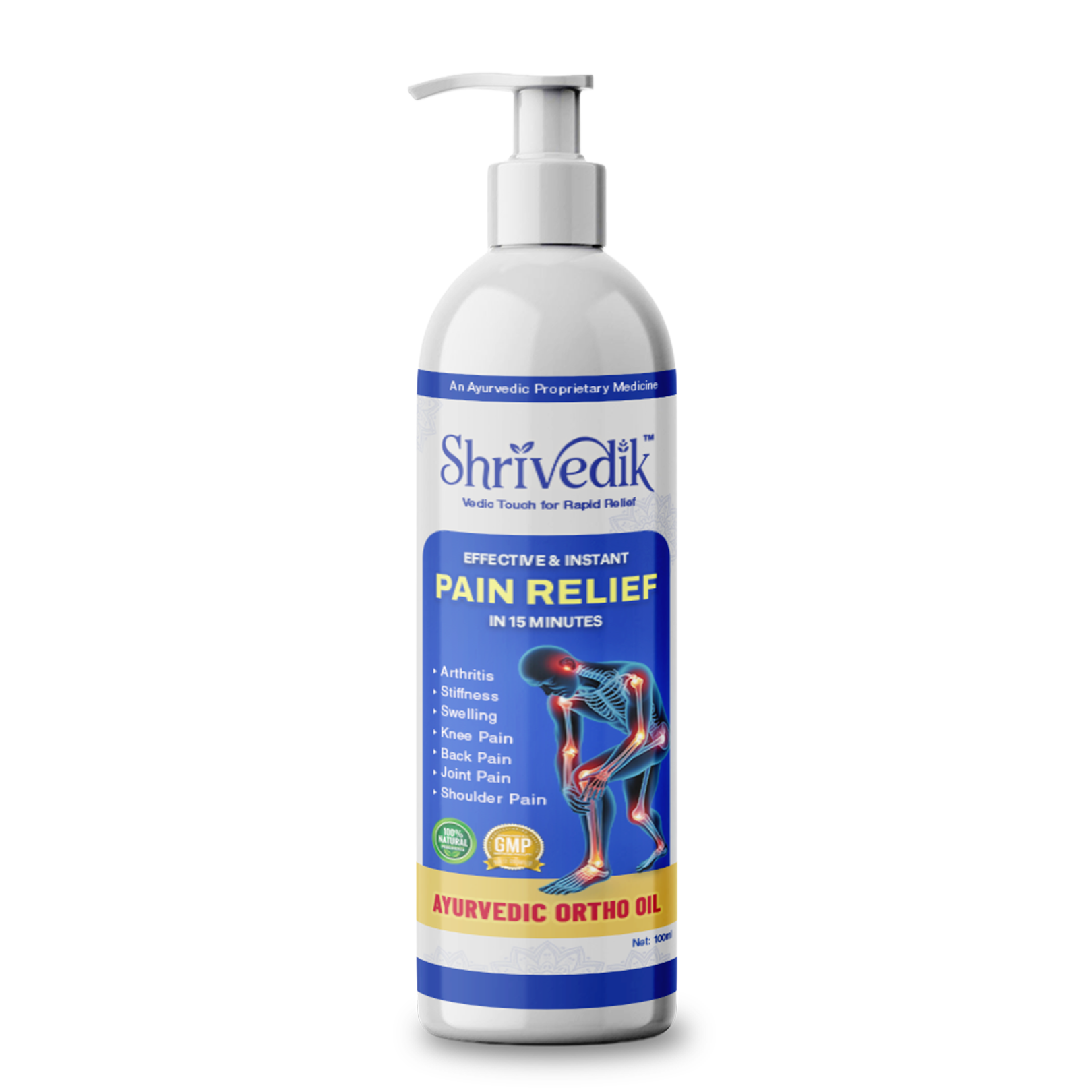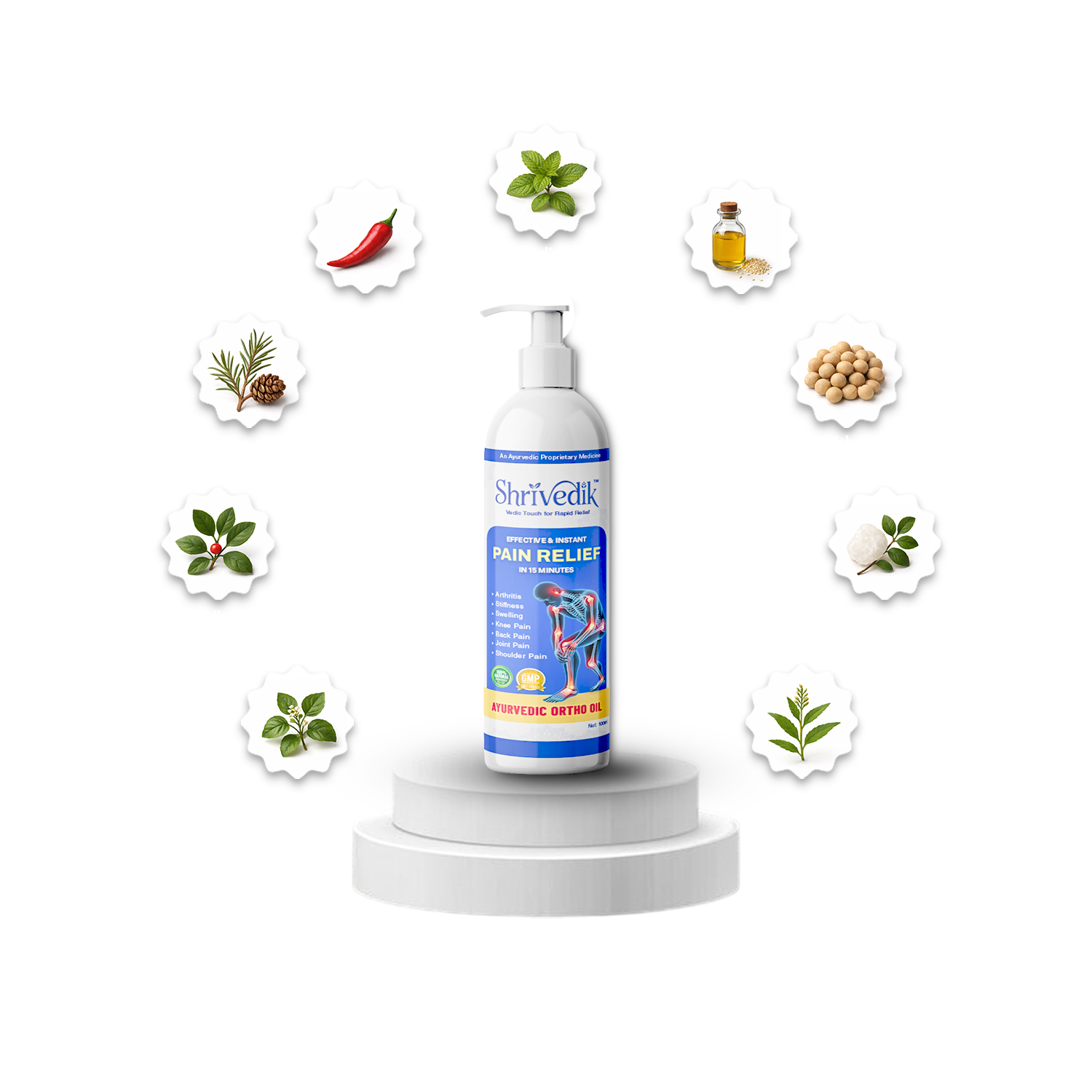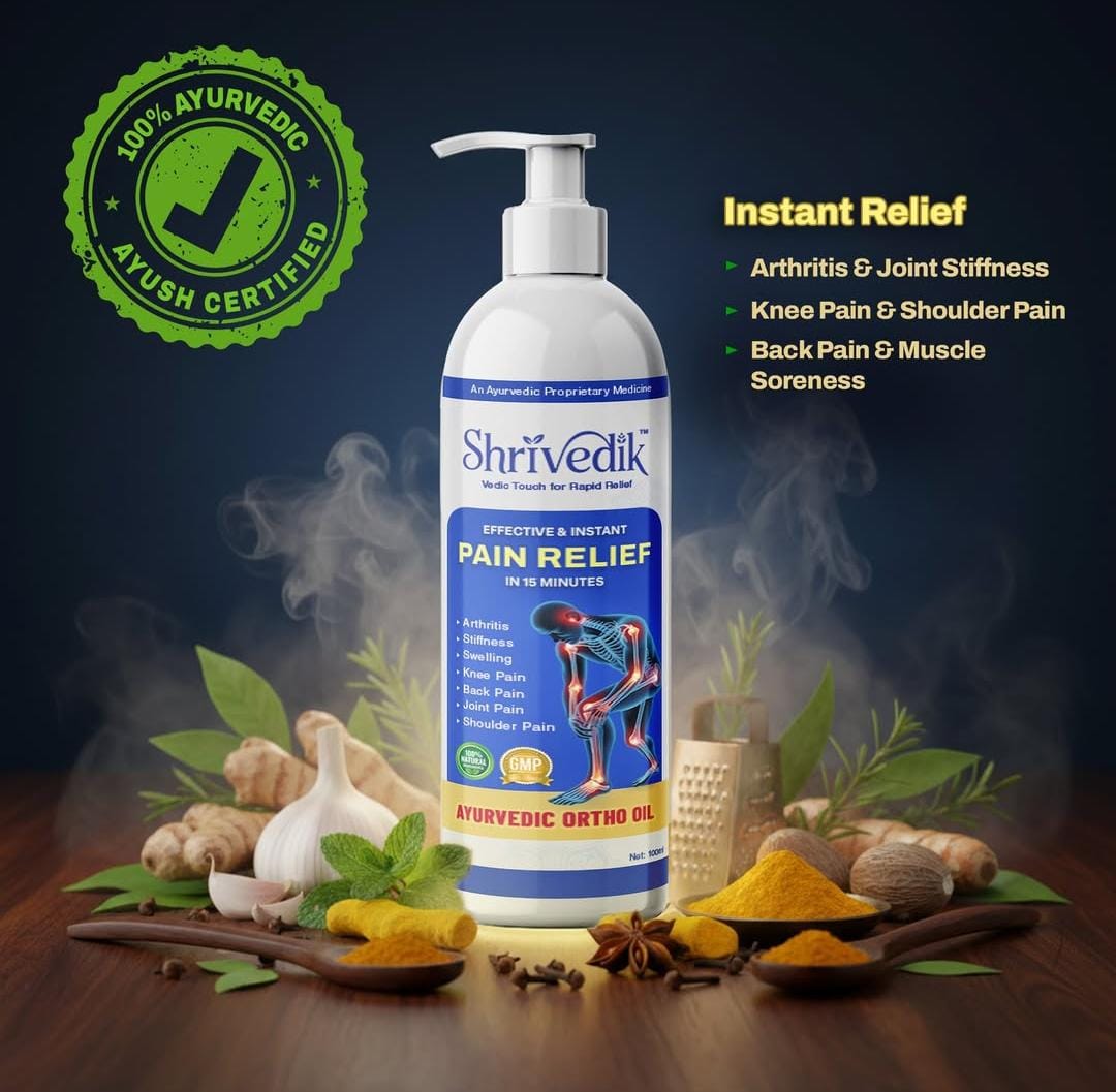 Shrivedik Ayurvedic Ortho Oil relieves joint, knee, back & muscle pain naturally — without dependency.